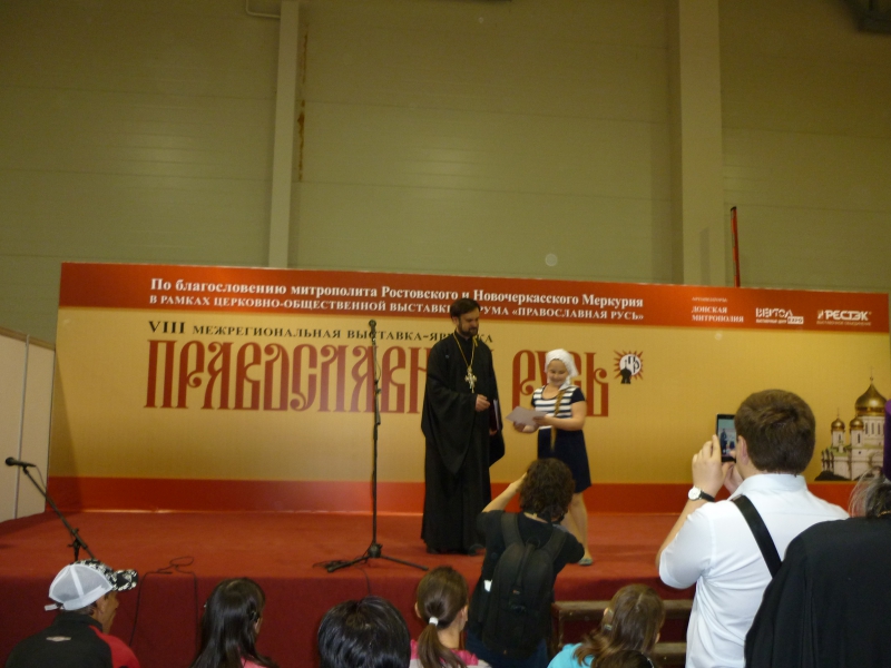 23 мая 2014 г. на сцене ВЦ «ВертолЭкспо» среди мероприятий, проходящих в рамках выставки-ярмарки «Православная Русь», прошла церемония награждения победителей III и IV тура Кирилло-Мефодиевской олимпиады по Священной истории и закону Божиему, которая проходила в Донской митрополии с февраля по май 2014 г. Руководитель отдела религиозного образования и катехизации Ростовской-на-Дону Епархии протоиерей Андрей Мекушкин вручил награду Ирине Зубковой, воспитаннице учебно-воспитательной группы Свято-Троицкого прихода с. Самарского, занявшей 2-е место на заключительном митропольном уровне олимпиады и 1 место на уровне епархии. В церемонии награждения приняли участие настоятель храма Святой Троицы иерей Иаков Ольховатов, преподаватели УВГ прихода и родители Ирины.